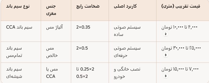 - قیمت: سیمهای ارزان معمولاً از آلیاژ مس ساخته میشوند و کیفیت پایینتری دارند.