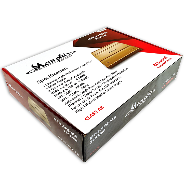 Memphis AP 60 AB نمایندهی سطح بالای سری آمپلیفایرهای 4 کاناله کلاس AB این برند است. با تزریق 60 وات RMS واقعی به هر کانال، این دستگاه آماده است تا فشار مورد نیاز برای درایو کردن هر نوع بلندگو، از میدرنجهای پرمصرف گرفته تا سابووفرهای با حساسیت متوسط، را فراهم کند، در حالی که کیفیت صدای خالص و بدون رنگشدگی کلاس AB را حفظ مینماید.