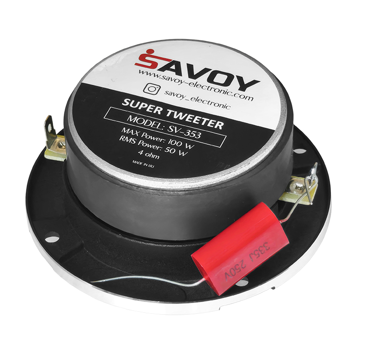 سوپر تیوترها به طور خاص برای بازتولید دقیقترین و بالاترین فرکانسها طراحی شدهاند؛ فرکانسهایی که به موسیقی “شفافیت”، “جزئیات” و “پرتاب صدا” میبخشند. سوپر تیوتر ساووی SV-TW353 محصولی است که دقیقاً برای حل این نیاز در سیستمهای صوتی حرفهای طراحی شده است.